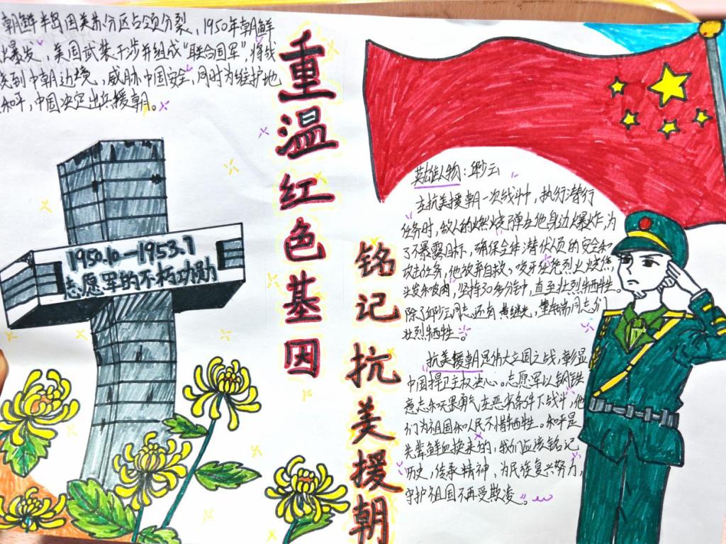 为纪念抗美援朝出国作战74周年,弘扬抗美援朝精神,激发学生爱国热情,10月25日,beat365英国官方网站开展“重温红色基因,铭记抗美援朝”手抄报活动。