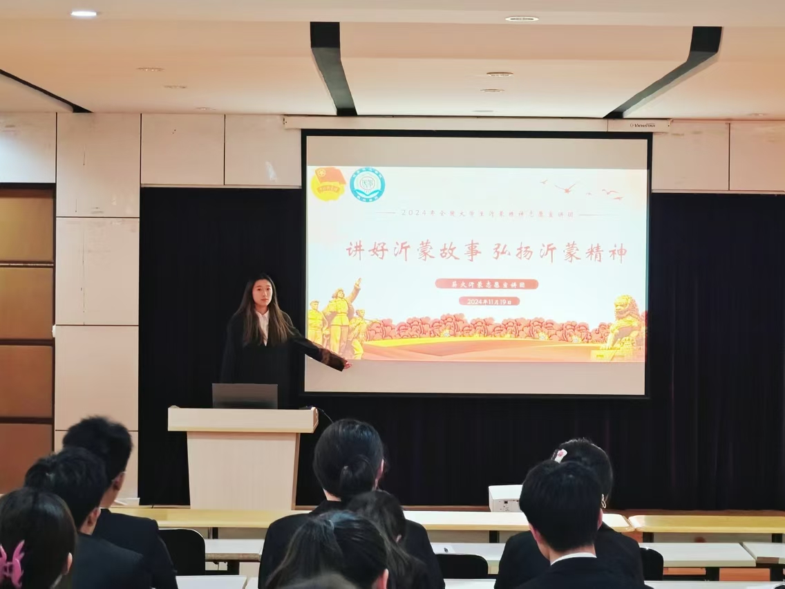 活动中,主讲人围绕“党群同心、军民情深、水乳交融、生死与共”的沂蒙精神,对沂蒙精神的基本内涵、特征进行详细讲解。随后,主讲人讲述了沂蒙红色文化故事和临沂历史文化故事,号召同学们沿着革命前辈的足迹勇毅前行,在日常的学习生活中践行沂蒙精神,肩负起实现中华民族伟大复兴的使命和担当。