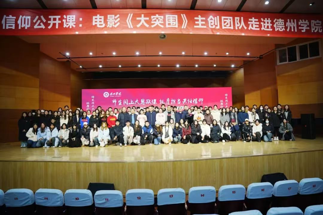 为激发现代青年大学生的爱国情怀,铭记历史,珍惜当下的和平生活,传承弘扬红色沂蒙精神。12月9日德州学院于南校音乐厅组织开展了信仰公开课:“电影《大突围》走进德院”活动。电影《大突围》出品人、总制片人陶姝君,导演杨真、演员廉知颖、副导演阿坤出席,beat365英国官方网站“薪火沂蒙志愿宣讲团”积极参入到活动当中,深入学习红色沂蒙精神的内涵。