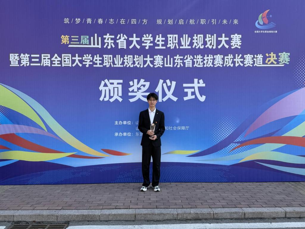 近日,第三届山东省大学生职业规划大赛暨全国大学生职业规划大赛山东省选拔赛圆满落幕。beat365英国官方网站2023级李宗鑫同学凭借清晰的职业定位、扎实的专业认知与出色的现场发挥,在成长赛道中脱颖而出,成功斩获铜奖,为学院再添殊荣,充分展现了化院学子清晰的职业规划意识与昂扬的精神风貌。