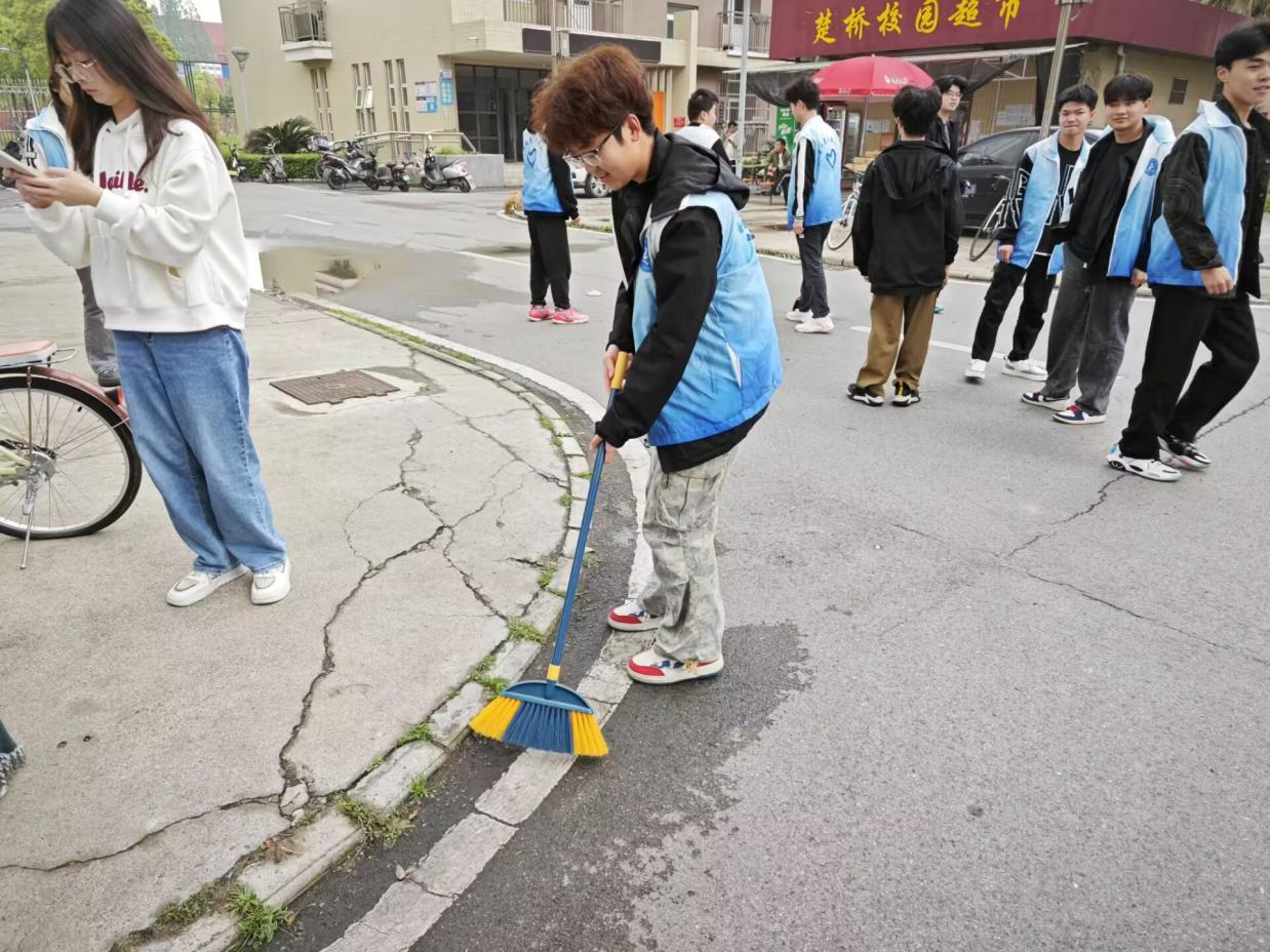 此次活动由王伊蒙组织,她带领动医职32301班,全体人员有条不紊地进行。到达指定时间和地点之后,安竑羡根据人数分组,划分区域进行打扫。随后同学们便到达各自指定区域,期间同学们对待工作一丝不苟,每一角落都不放过,经过不懈努力后,规划区域变得干干净净,一尘不染。