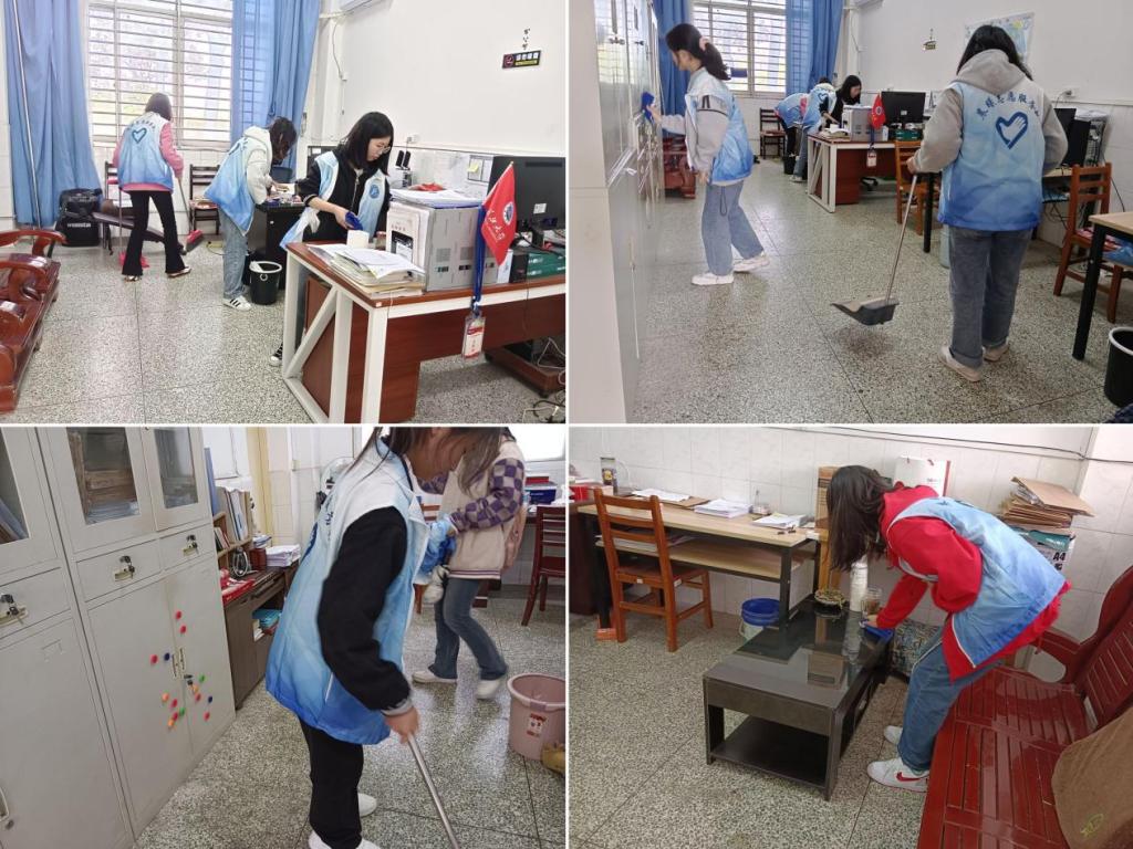 在整个实践劳动过程中,各小组带着清洁工具前往各自区域,擦拭会议室内的桌面,清扫地面以及室内的各个角落。每位同学都热情满满,积极响应学院号召,挥洒汗水,为整洁明亮的环境进行辛勤劳动。活动结束后,同学们将垃圾装运丢至垃圾桶,并将清扫工具放至原处。对焕然一新的会议室,每个人的脸上也都露出了笑容。