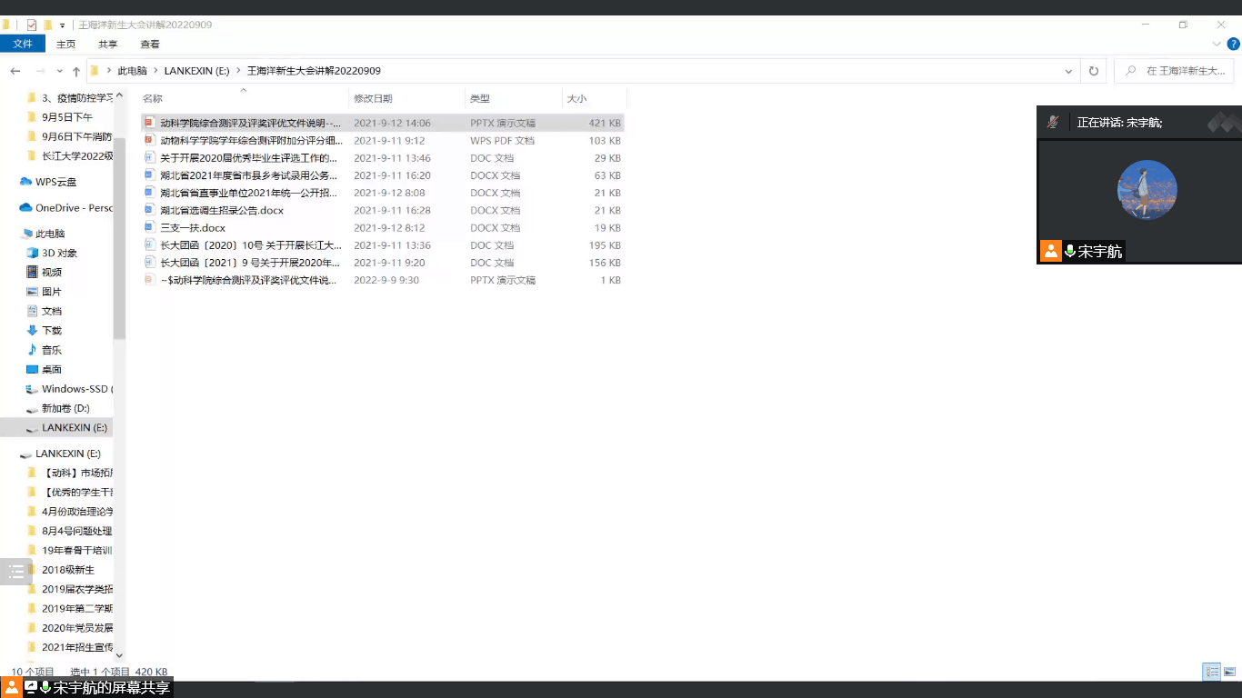 (通讯员:代雨婷)为了帮助新葡萄官网22级新生对崭新的大学生活有全面的了解和认识,尽快进入大学生角色,明确自己的方向,树立自己的目标。2022年9月9日上午九点半,优秀校友动物科学学院团委书记王海洋、22级辅导员宋宇航和21级学生凤昊共同参加此次交流会。