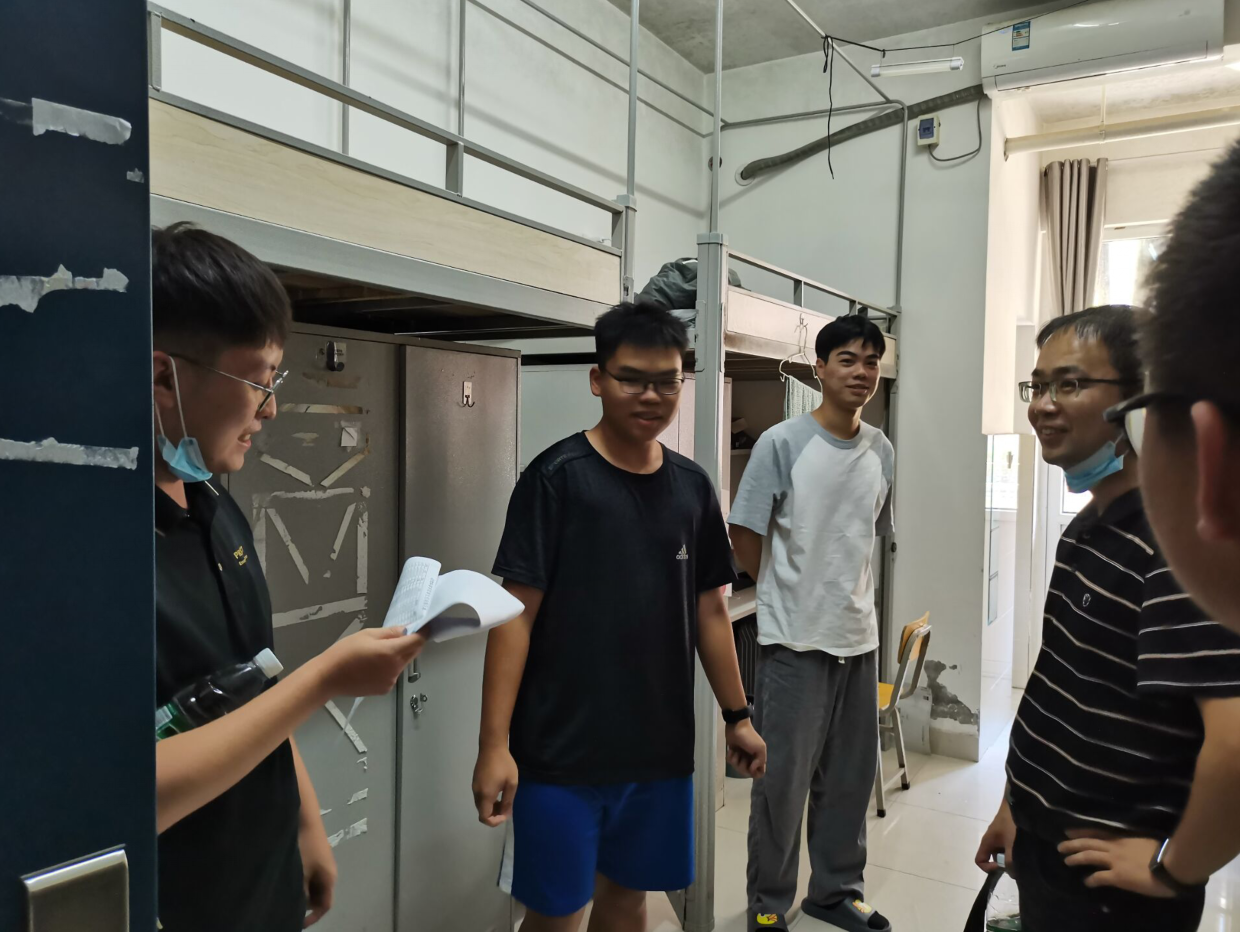 在走访的过程中,老师们亲切的向学生们询问对寝室的满意程度,了解学生寝室热水、门窗等是否可以正常使用,对灯光不亮的寝室也建议及时向宿管报备进行更换。班主任们叮嘱学生,在寝室中一定要注意卫生与安全,在疫情之下要始终保持高度警惕,严格按照学校的规章制度进行核酸检测与安全监测,及时打扫卫生。对于住在低楼层的同学,老师们建议学生要做好防潮防霉工作,注意寝室通风除潮,此外,也提醒学生们要保护好个人财产安全,谨防上当受骗。