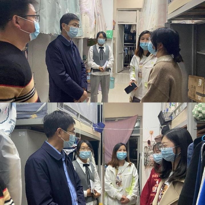 (通讯员:来春玲 胡贤灵|摄影:来春玲)为进一步落实疫情防控工作,传达学校疫情防控相关管理规定,10月13日晚19:30,新葡萄官网党委书记熊新山、辅导员王海洋、杨湘虹、宋宇航、严子星、舒玖深入学院各宿舍开展查寝工作,了解并询问疫情期间同学们学习和生活上的情况。