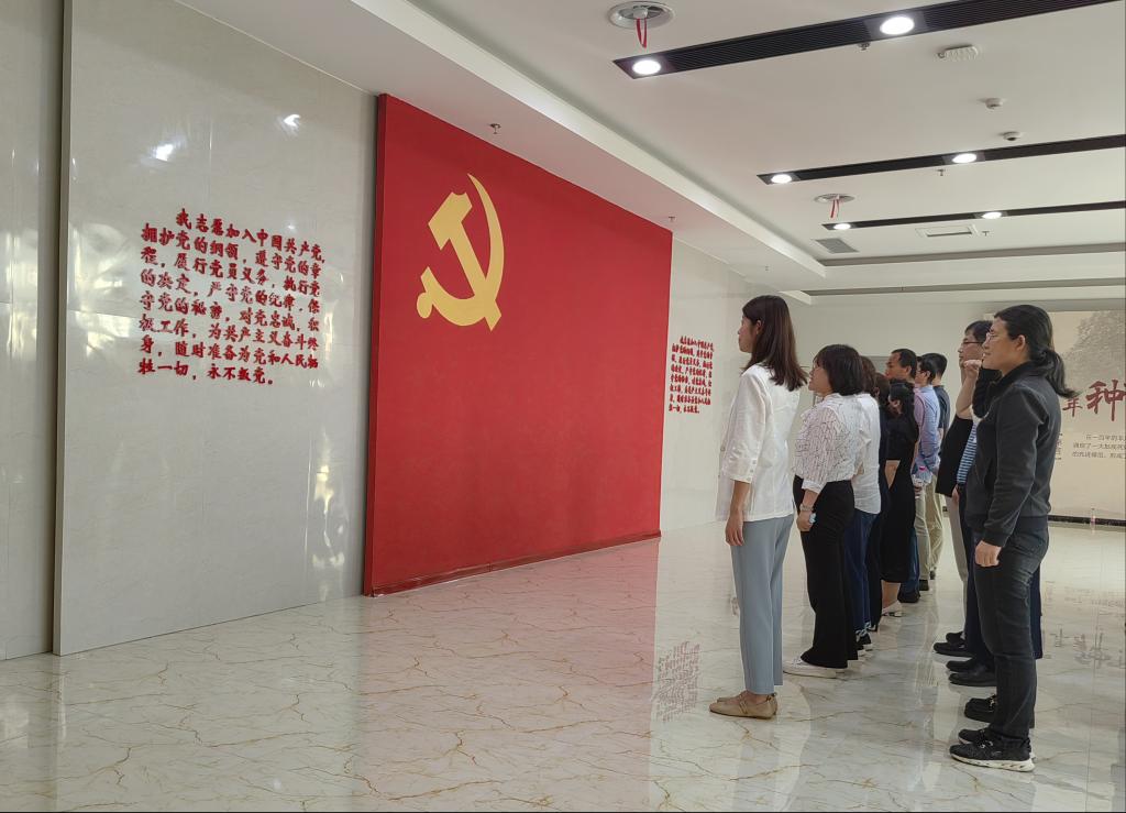 齐河党员教育体验基地内,讲解员带领大家参观不同主题的展厅,生动、鲜活地讲述着党史和人物故事。跟随讲解员的讲解,大家循着一幅幅照片、一件件展品,一幕幕场景,重温革命年代、奋进时代场景,进一步学习革命先辈的大无畏奉献精神,感受优秀共产党员立足岗位敢于担当、勇于奉献的宝贵品格。全体人员通过现场聆听讲解和情景式体验,接受了一次党性教育和党性锻炼。参观结束,大家在党旗面前庄严宣誓,重温入党誓词,在党旗下接受心灵的净化和洗礼。