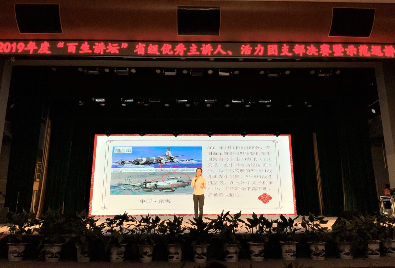 (通讯员:卢倩)12月8日上午,2019年度湖北省“百生讲坛”——共青团学习贯彻习近平新时代中国特色社会主义思想活力团支部、优秀主讲人决赛在中国地质大学(武汉)举行,动物科学学院动医卓31801班范虹宇同学荣获省级优秀主讲人之金牌主讲人称号及决赛二等奖。
