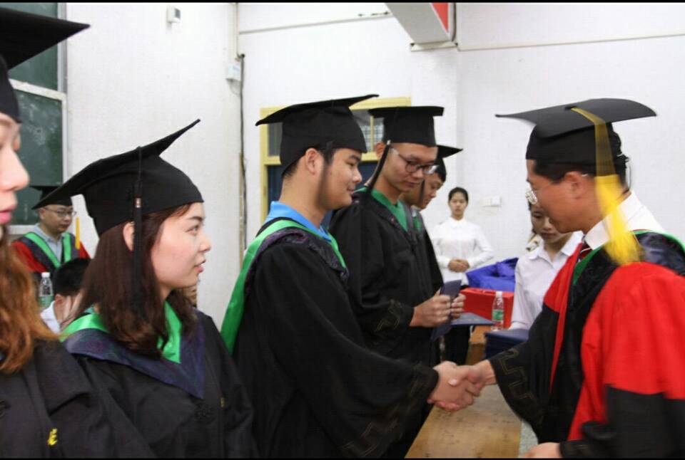 毕业典礼在雄壮的国歌中拉开序幕。随后李副院长和杨院长分别为2017年毕业生代表颁发本科毕业证书,授予学位证书。接着由党委书记王凌华宣读了《优秀毕业生表彰文件》,许巧情副院长宣读了《考研表彰文件》。然后是13级毕业生代表田文军发言,他说:“首先要感激学校学院的教育栽培,感谢四年来导师的关怀、各位老师的辛勤教导及同学的鼓励与帮助,让我人生中最宝贵的四年时光充实而有意义,我对我的大学生活无悔并将永远感激,毕业是结束也是开始,未来的漫漫长路,我将继续斩棘而行,不负期望,一路向阳。”接着是各位领导和老师作临别寄语。首先教师代表阮国良博士发言,他为毕业生送上了真诚的祝贺,同时提出三点忠告与众毕业生共勉:勿以善小而不为,勿以恶小而为之;谦谦君子和而不同;各美其美,美美与共。接着杨玉莹院长发表了重要讲话,他也对全体毕业生顺利完成学业,即将踏上崭新征程表示衷心的祝贺,同时话语中流露出对学生未来是否会作出正确的抉择忧虑,他告诫各位毕业生:“首先要科学规划自己的人生,登高望远。其次要努力,要坚守。”领导和老师们的谆谆话语,大家听课了四年,到这离别之际却熟悉深情,大家依依惜别但仍会奋勇前行,未来精彩处还会再见。最后,各班代表捐赠新葡萄官网amg教育发展基金,并由王雨副书记对典礼进行了总结。