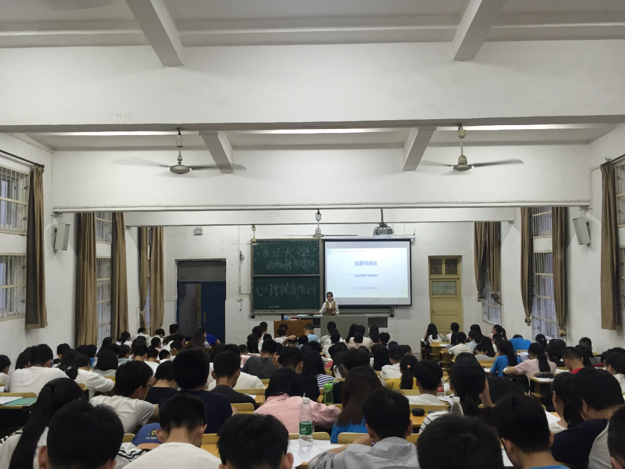 (通讯员金润泽)与压力相伴,与健康同行。5月25日晚上七时,动物科学学院2017年上半年心理健康培训在2教T1举行。此次培训面向动科院全体16级学生,主要为了让同学正确认识压力、学会与压力相处。本次培训主讲人为16级辅导员杨湘虹,党委副书记王雨出席了本次培训。