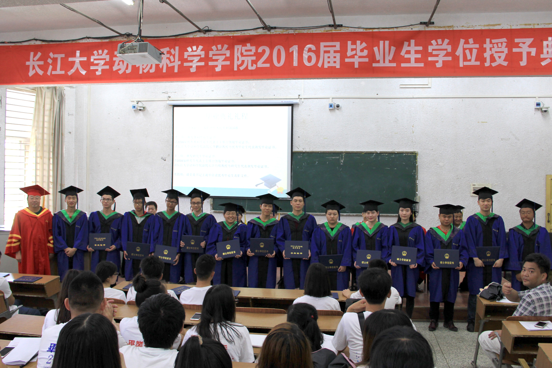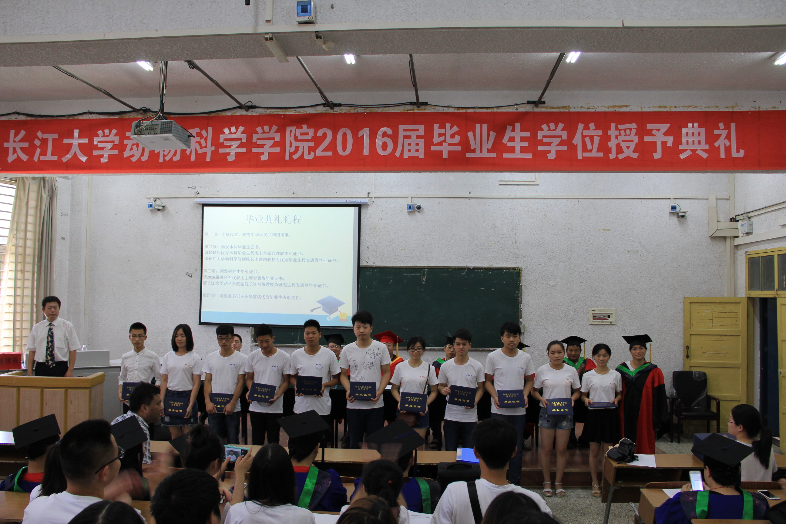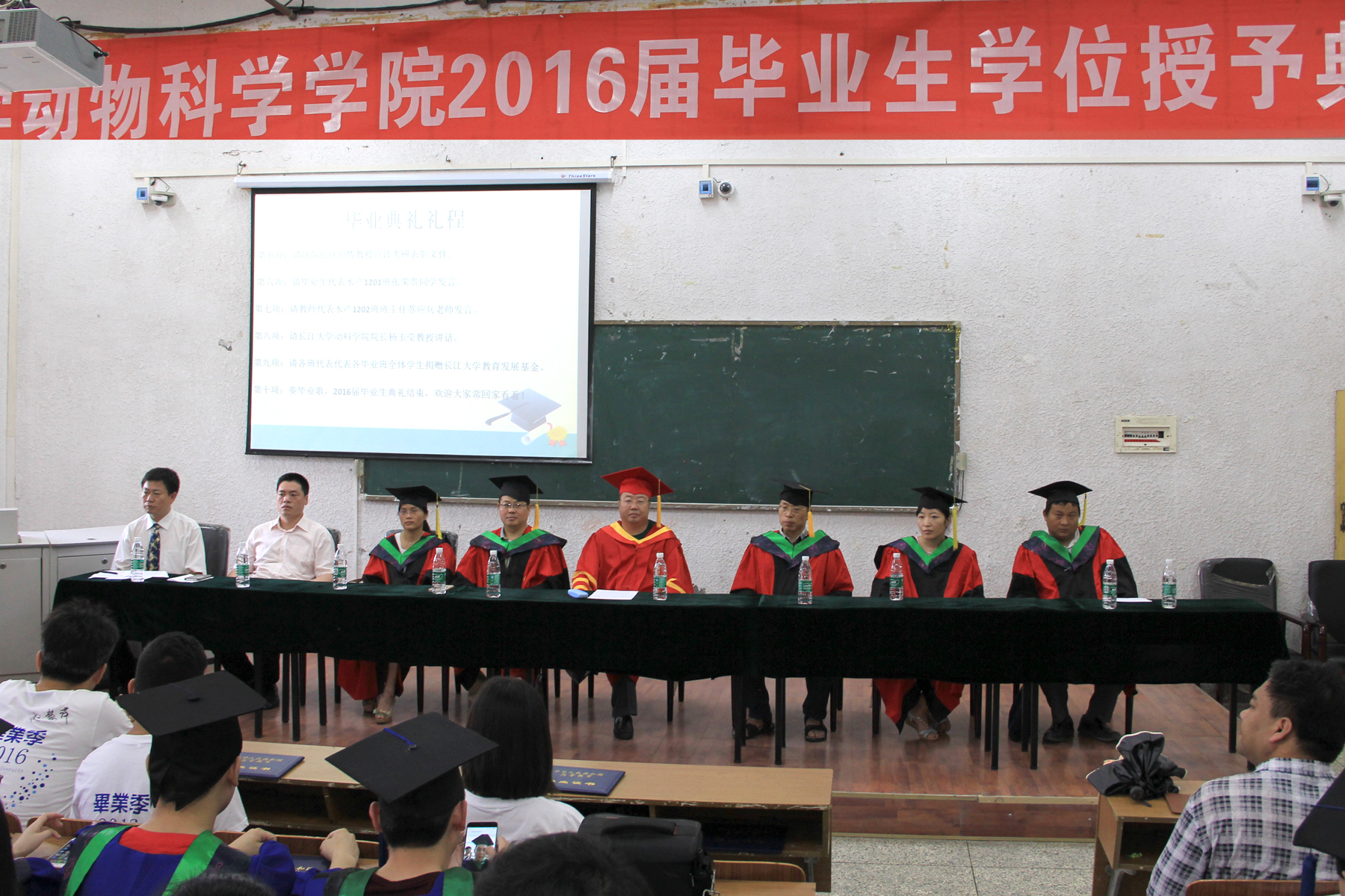 6月14日上午10时,新葡萄官网2016届毕业生毕业典礼暨学位授予仪式在5教203教室隆重举行。院长杨玉莹、党委书记王凌华、副院长许巧情、党委副书记王雨、水产系主任柴毅、动医系主任杨丰利、动科系主任杨烨、学工办主任李则俊、原辅导员靳恒及部分毕业班班主任出席了毕业典礼和学位授予仪式。典礼由党委副书记王雨主持。