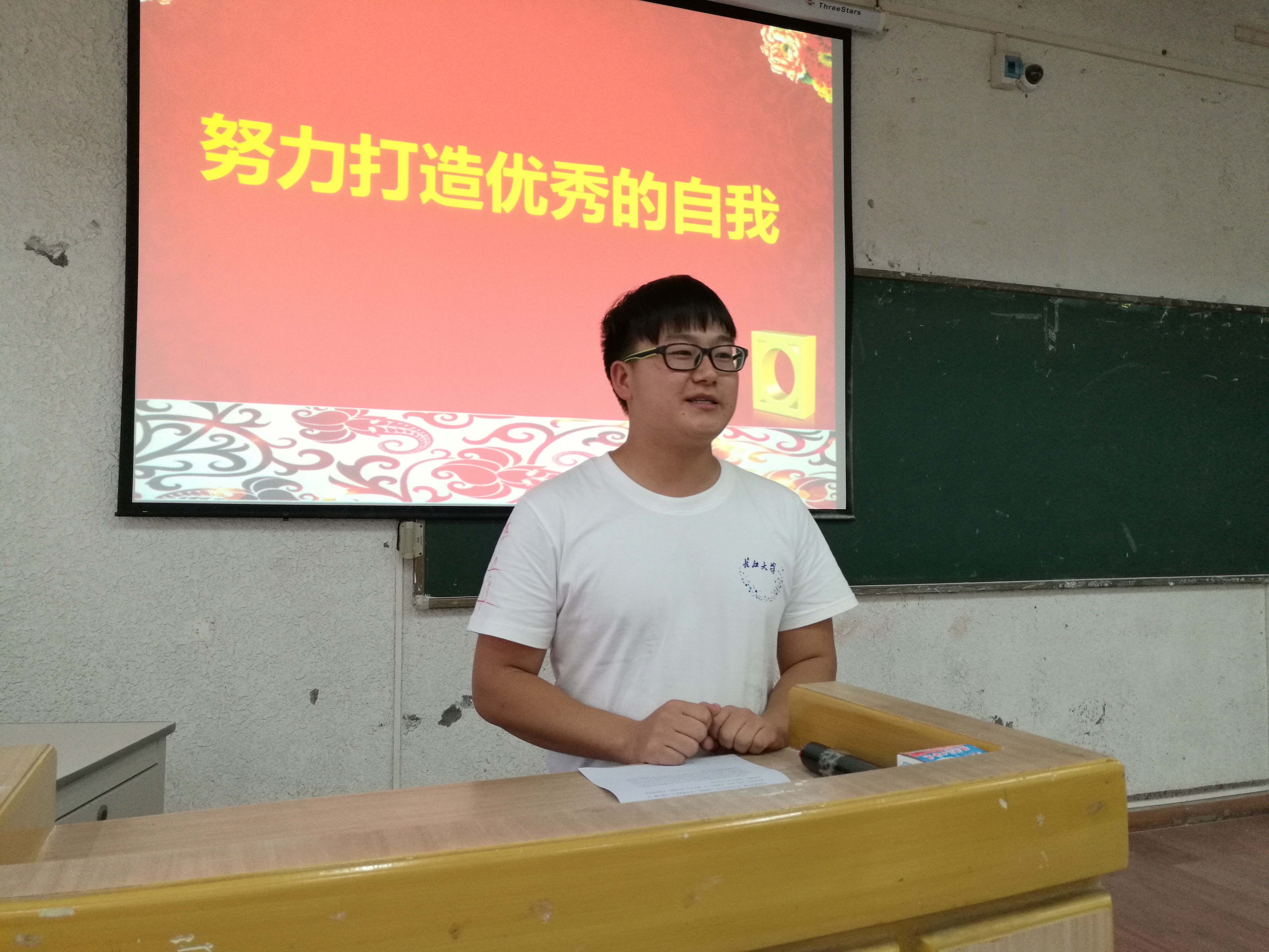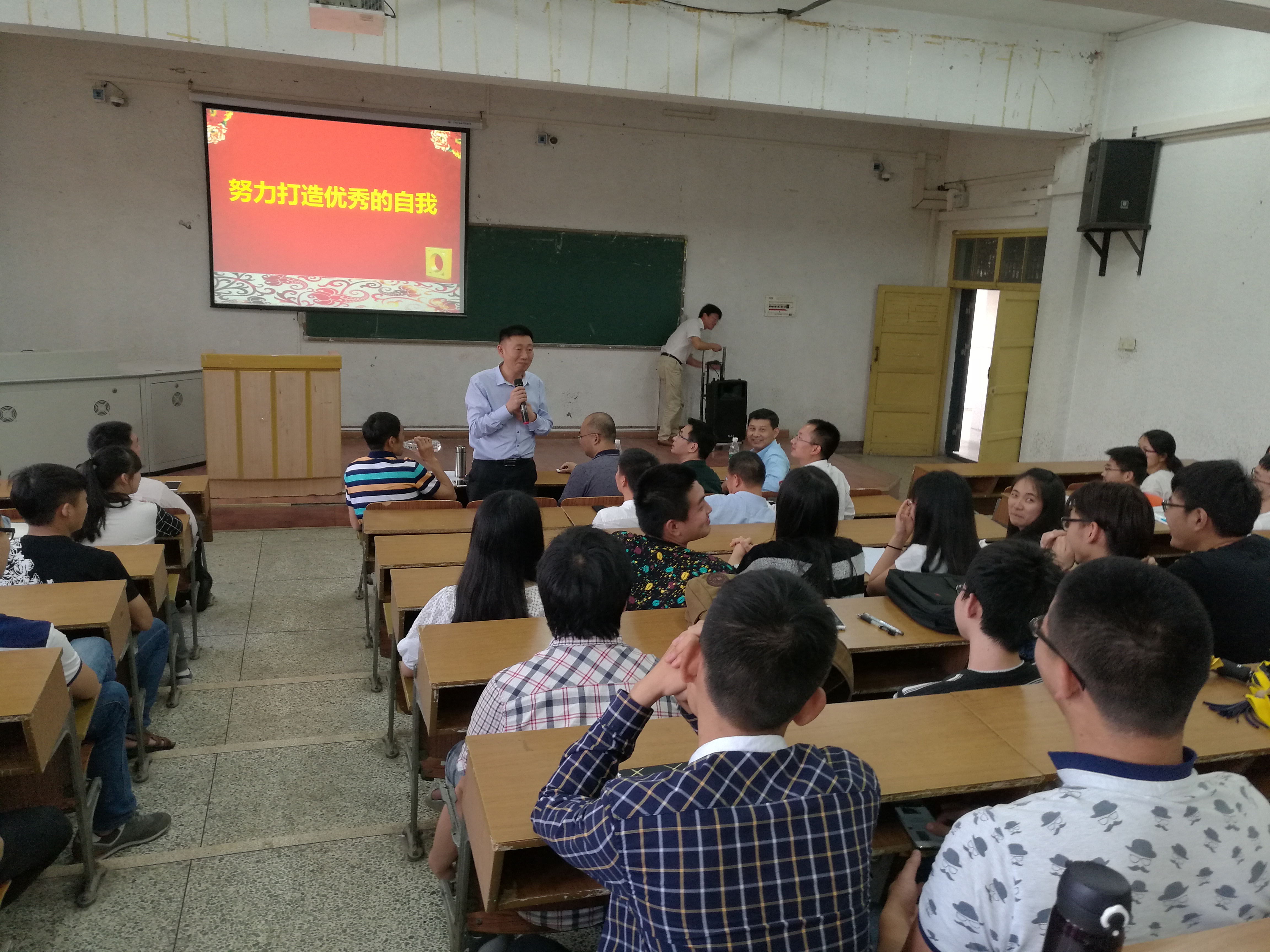 在颁奖仪式后,05级校友、武汉校友会秘书长、正大食品湖南湖北区总经理秦浩曦以“努力打造优秀的自我”为题分享了自己的成长经历。