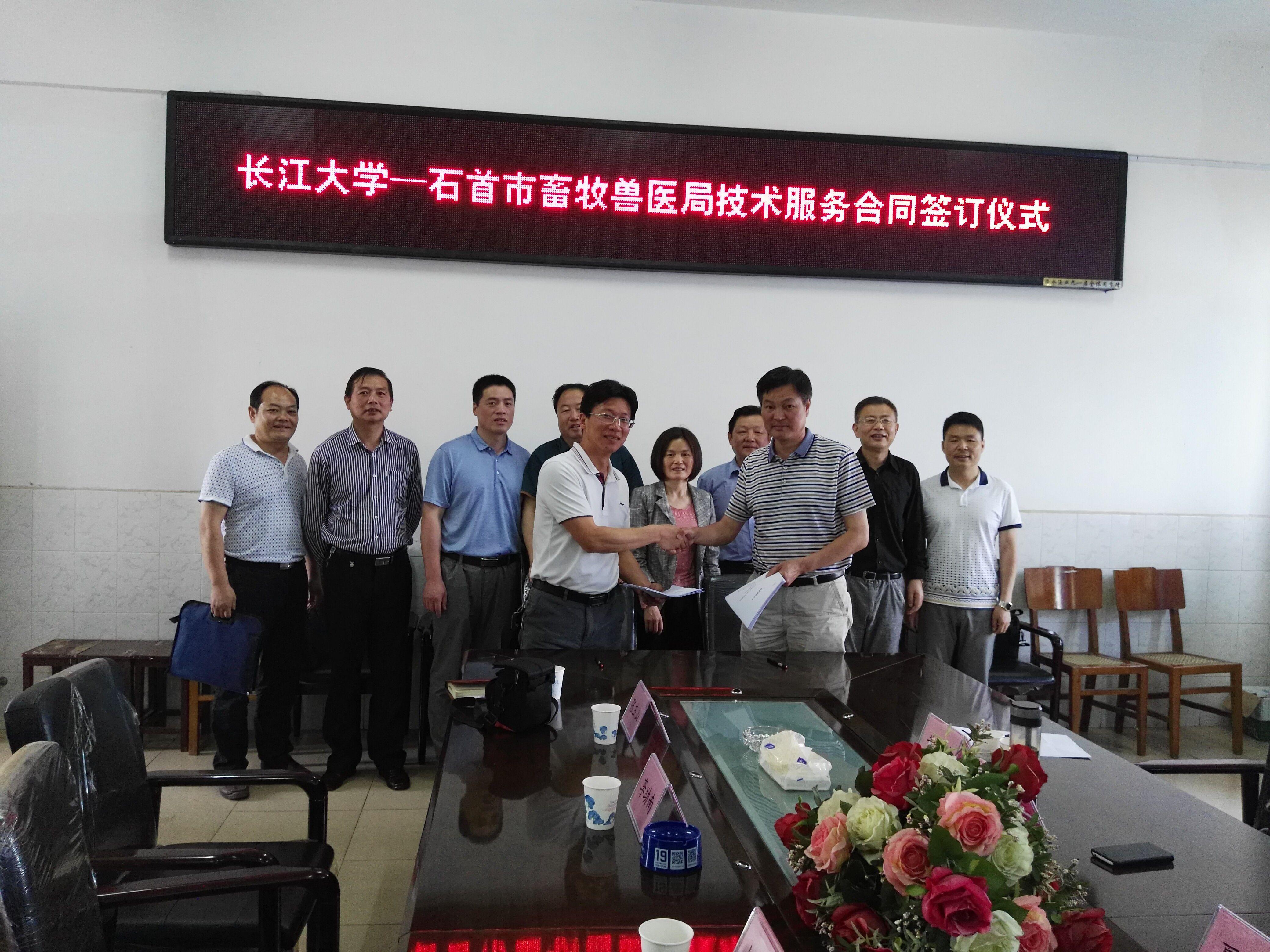 5月18日下午4点西校区动物科学学院会议室,新葡萄官网与石首市畜牧兽医局关于《石首市畜禽养殖区域规划制定》技术服务合同的签字仪式隆重举行。