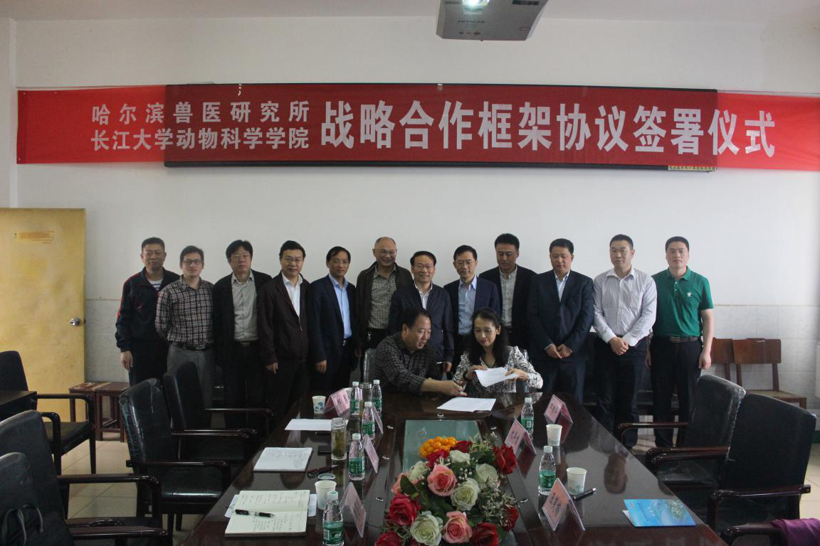合作共建,互利共赢。5月10日上午9:00,我校与中国农业科学院哈尔滨兽医研究所战略合作签约仪式在西校区5教807动物科学学院会议室隆重举行。