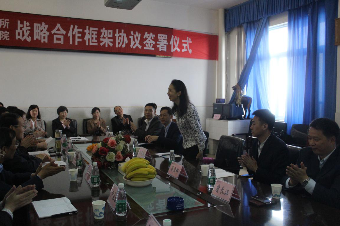王笑梅副所长作为代表介绍了哈尔滨兽医研究所的发展历程、主要任务、发展目标和为新中国做出的巨大贡献。在谈到从基础到研发再到市场的“三位一体,协同创新”的全产业链发展模式时,她充分肯定了新葡萄官网amg动物科学学院与哈尔滨兽医研究所在前期人才培养和交流合作中所取得的成绩,并希望今后双方在研究生和青年教师培养、项目合作、团队建设、平台建设和联合实验室建设等方面更进一步全面切实开展实质性的工作。