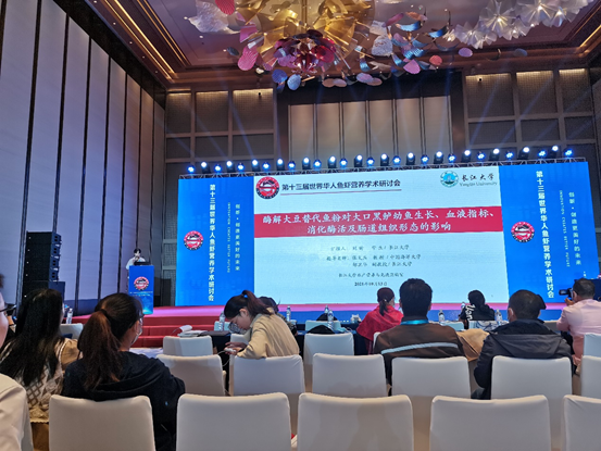 新葡萄官网amg动物科学学院水产系郜卫华副教授、胡伟博士、方刘博士、祝书杰、时于惠、周泽湘和刘昕师生七人很荣幸受邀参加此次会议,水产系系主任郜卫华副教授以“酶解大豆替代鱼粉对凡纳滨对虾生长性能、肠道菌群、免疫应答和抗病能力的影响“为题,胡伟博士以”乙醇梭菌蛋白替代鱼粉对大口黑鲈幼鱼生长性能、消化酶活性、抗氧化能力及血清生化指标的影响“为题,研究生刘昕以“酶解大豆替代鱼粉对大口黑鲈幼鱼生长、血液指标、消化酶活和肠道组织形态的影响”为题,分别做了大会报告。