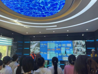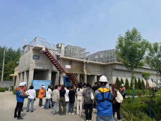 图3 工程师在为同学们介绍污水处理工艺流程及构筑物