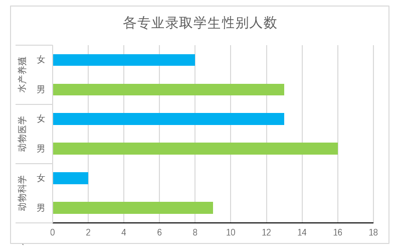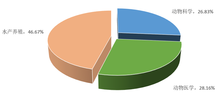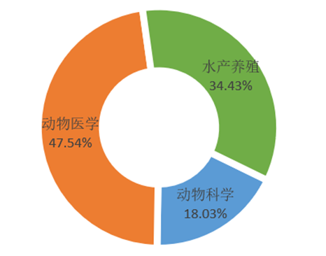 从录取学生专业分布来看,动物科学专业占18.03%,水产养殖专业占34.43%,动物医学专业占47.54%。