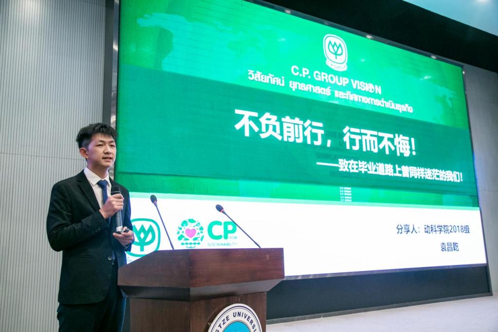 在师哥师姐说的环节中,2020届毕业生宜昌正大有限公司兽医技术主管田棋进行分享,他用“青春还在,为梦前行”为主题为同学们分享了他从毕业到正大的成长,向同学们提出“机会多多,自己把握”的观点,强调了在职业规划与目标中“提升技能”、“积累经验”、“持续学习”的重要性。新葡萄官网amg2018届毕业生,正大集团农牧食品企业湖北区网格化项目区域主管袁昌乾从自己的成长经历给同学们分享,表示每个同学都应该坚定信念,不负韶光,勇往直前。无论风雨,行而不悔,不断提升自己,让人生旅途充满意义。