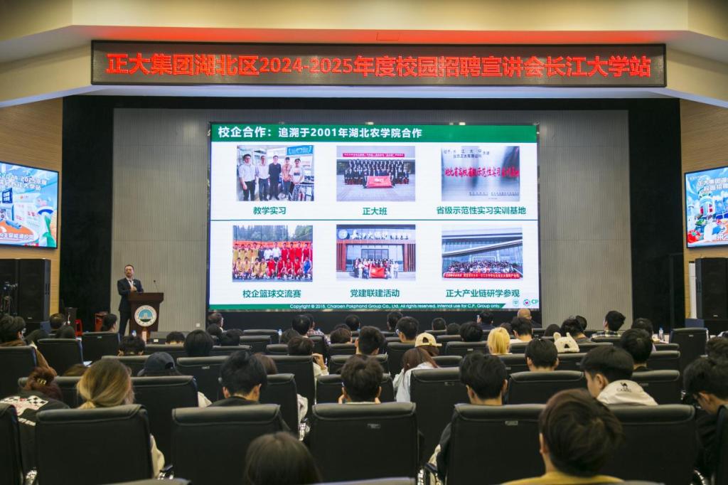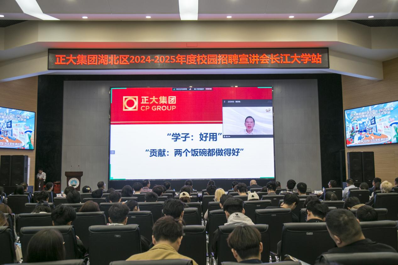 宣讲环节中,正大集团农牧食品企业湖北区食品销售与零售事业副总裁秦浩曦先生向在座的同学们详细介绍了正大集团的概况。他从集团的发展历程、组织架构以及未来的宏伟蓝图等多个维度进行了全面阐述,并对新葡萄官网amg学子在正大集团的卓越表现和杰出成就给予了高度评价。秦总强调,在正大集团,员工能够享受到行业前沿的培训资源,职业发展路径覆盖整个产业链,并且能够获得国际化的广阔视野。