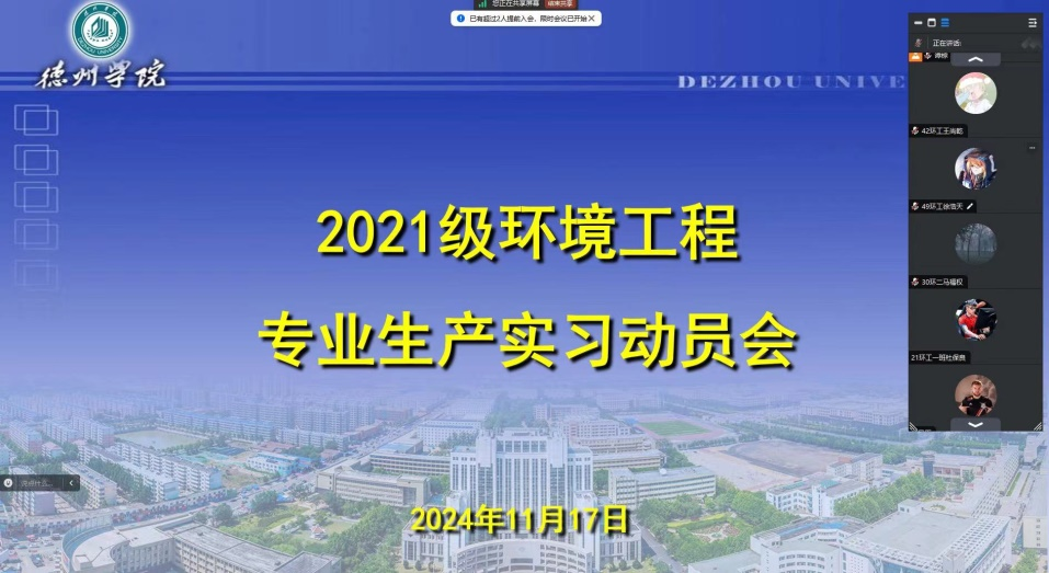 实习前,环境工程系组织了线上实习动员会,部署实习期间学生需要完成的任务,帮助学生明确实习安全、实习纪律等注意事项。