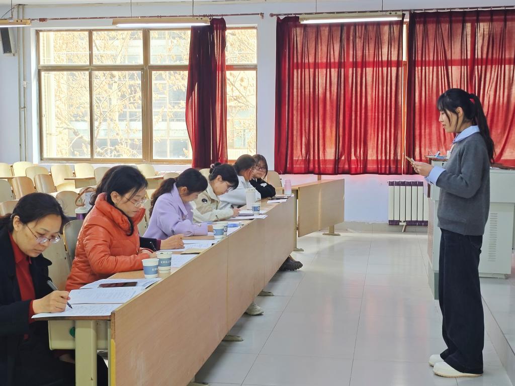 3月14日,beat365英国官方网站师范生从业技能大赛校级选拔赛在求实楼214举行。比赛由化学系主任贾春晓主持,并邀请到德州市教育科学研究院正高级化学教研员张永清、德州市第一中学老校区化学组教研组长王燕青、德州市第五中学化学教研组长姬慧慧、德州市书法协会副主席曹振童以及2位院内专家组成专家评审团,为参赛选手提供专业指导和公正评审。