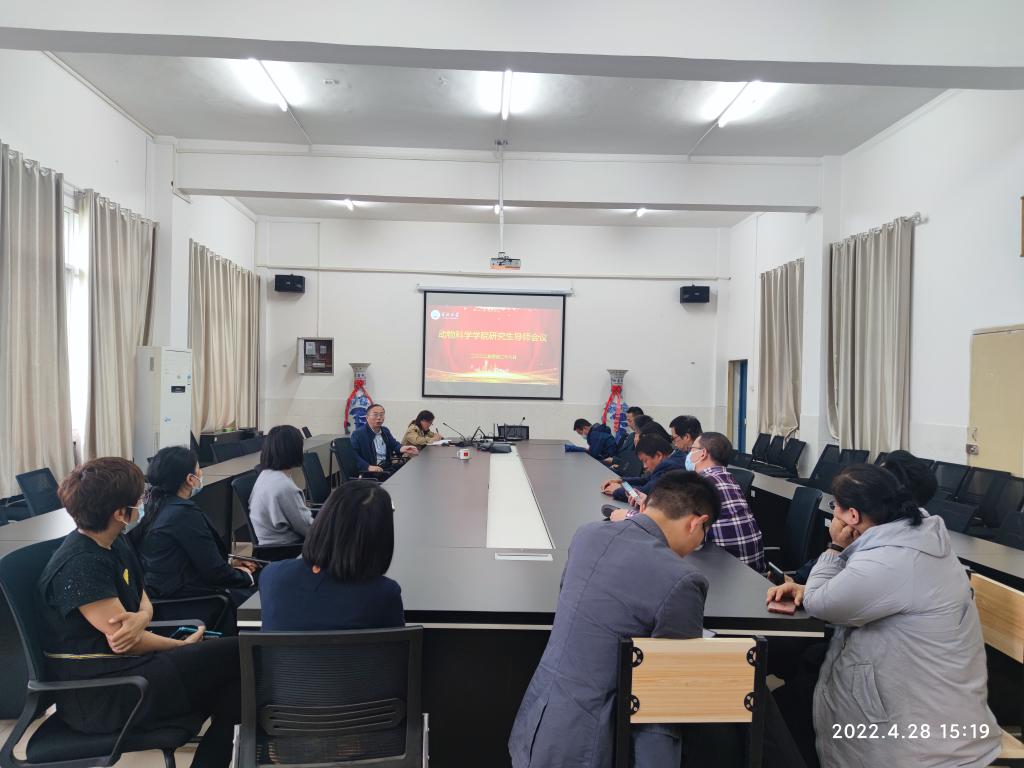 (通讯员 石博妹)4月28日下午,新葡萄官网在5教1005会议室召开了全体研究生导师会议,学院常务副院长高学军、系主任郜卫华、郭利伟出席会议,会议由学院分管科研和研究生工作的副院长许巧情主持。 会上,高院长提出为了响应国家乡村振兴战略,培养现代化农业专项人才,切实提高新葡萄官网专业硕士研究生培养质量、深化校企合作、拓宽导师科研项目经费来源渠道,新葡萄官网领导班子通过外出走访企业,与大北农公司初步达成联合培养研究生意向,并就具体合作细节与导师们进行商讨,征求大家意见。 许巧情副院长对新葡萄官网2022研究生招生工作进行汇报。新葡萄官网2022年共招收研究生87名,全日制83人,非全日制4人。其中推免生7人,一志愿51人,调剂29人,圆满完成招生任务。许院长指出最近几年新葡萄官网在人才培养、导师队伍建设等方面取得了一定的成绩,但也要看到,我们在研究生培养过程管理、研究生科研产出等方面还存在不足,希望各位导师再接再厉,学院的研究生培养质量能够再上一个新台阶。