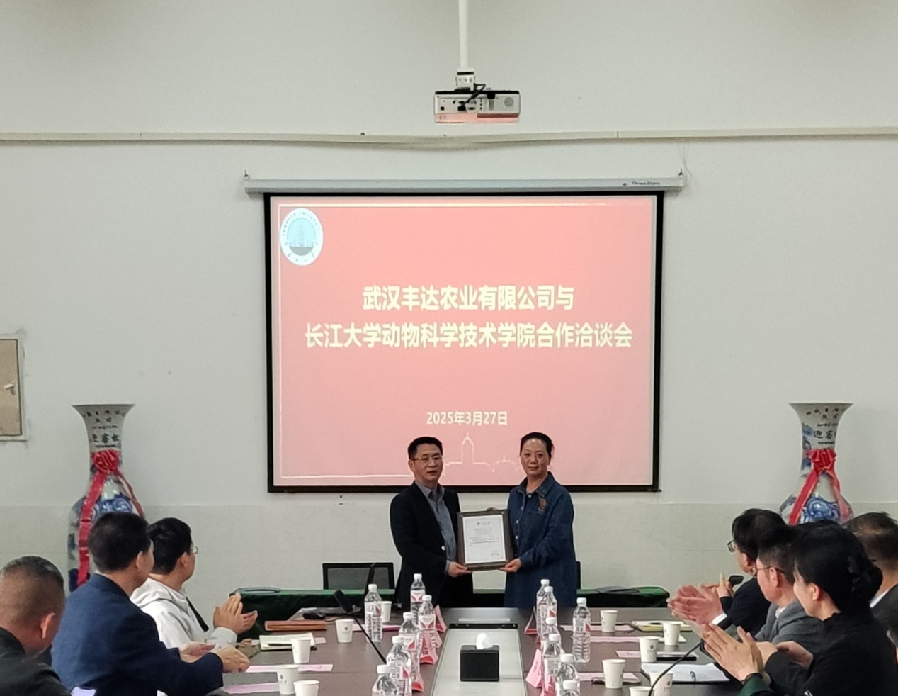 会上,武汉丰达农业有限公司向新葡萄官网amg捐赠10万元,设立“丰达博士基金”,专项用于学院人才建设,重点支持青年教师的科研与职业发展。新葡萄官网amg院长高学军从师资队伍、学科建设、科研成果及社会服务等方面介绍了学院的发展现状,并期待与企业在技术研发、产业实践等方面展开深度合作。