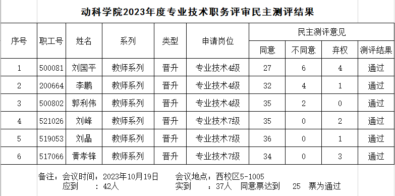 2023年新葡萄官网amg职称评审民主测评结果