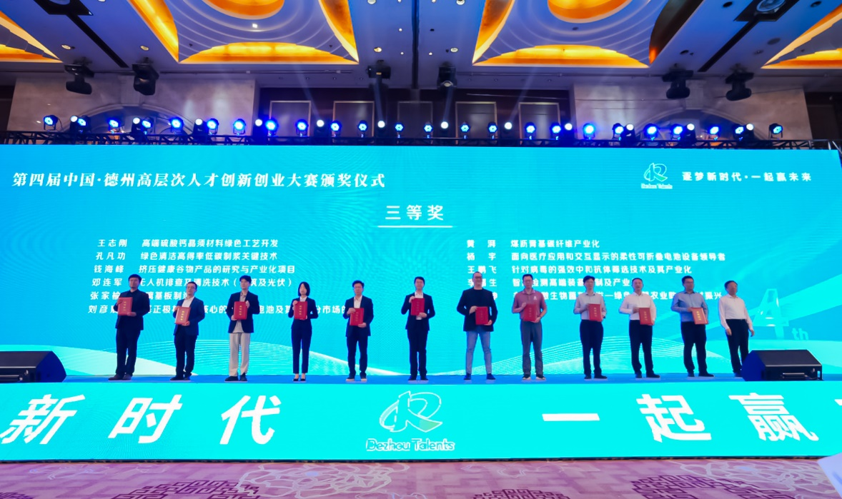 9月27日至28日,以“逐梦新时代·一起赢未来”为主题的第四届中国·德州高层次人才创新创业大赛总决赛、颁奖仪式暨京德科技人才合作交流大会在德州市隆重举行。经过初赛、决赛和排位赛激烈角逐,beat365英国官方网站王志刚教授团队参赛项目“高端硫酸钙晶须材料绿色工艺开发”获的创新组三等奖,王烟霞副教授团队参赛项目“糠醛渣木质素的绿色提取工艺开发”获的创新组优胜奖,取得学院在该类赛事新突破。