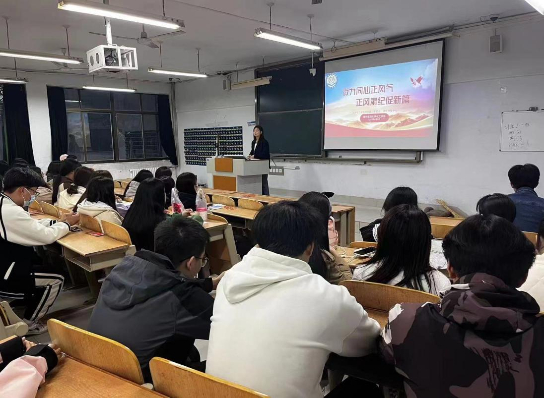 为进一步加强学生干部自律意识和服务意识,全面提高学生干部队伍综合素质,4月5日,beat365英国官方网站于求实楼212教室举行“勠力同心正风气,正风肃纪促新篇”学管会正风肃纪大会。会议由相关老师主持,班长、团支书、学管会成员参加。