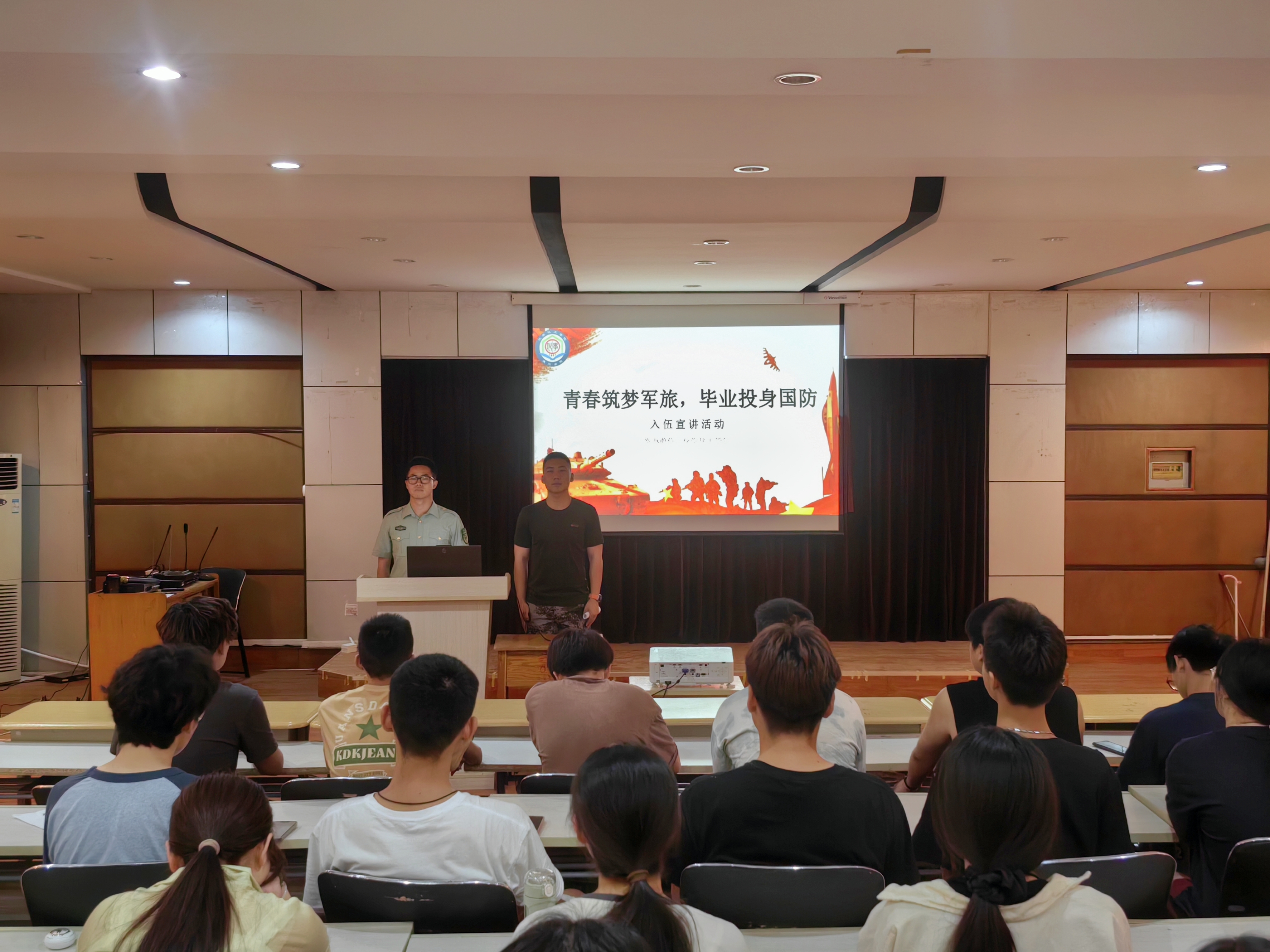 宣讲会上,退役大学生吴庆凯介绍了自己参军的经历,希望有参军意愿的同学能够珍惜机会,去部队锻炼。退役大学生陈自圆从自己在部队的军事侦查任务说起,谈到自己的历练和成长时,他说有志青年应该投笔从戎报效祖国。会后,两位同学耐心解答同学们提出的大学生入伍流程、优待政策、参军发展前景、退役复学等相关问题,会场气氛非常融洽。