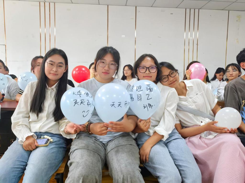 活动开始,新生们热情高涨,积极参与各项互动解压游戏。在“为‘锌’欢喜,拼图绘梦”迎新生拼图游戏中,大型元素周期表拼图吸引了众多新生共同参与,大家齐心协力拼出元素周期表,为自己的入学留下了深刻的记忆。“新的起点,梦想起航”的气球绘画仪式更是将活动推向了高潮,每个气球上都写着学生的新学期期望和目标,在写下梦想的同时,也记录了梦想。“化学元素大挑战,化梦为翼你我他”游戏中,同学们积极答题,遨游在化学知识的海洋中,为同学们日后的学习打开了大门。