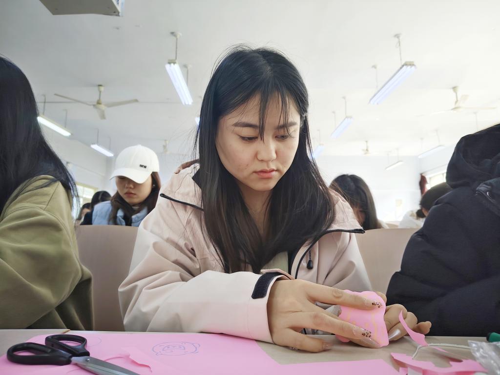 活动现场,社团成员为大家准备了丰富的材料包,并分步骤为大家详细讲解制作步骤,帮助同学们快速掌握制作技巧。在制作过程中,同学们纷纷展现出独特的创意,制作出极具个性化的作品。作品完成后,大家互相交流制作心得,分享创作灵感。