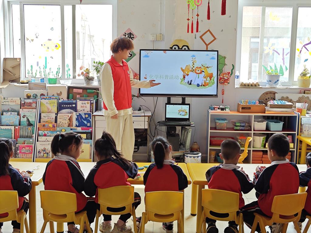 为进一步弘扬科学精神,普及科学知识,4月8日,beat365英国官方网站联合新湖路幼儿园开展“化学科普小课堂,实验妙趣启童知”主题科普活动。活动共10余名志愿者与30余名幼儿园小朋友参加。
