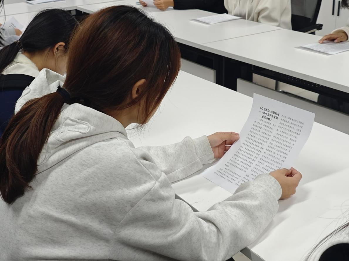活动伊始,负责人介绍本次活动主旨和内容,引导同学们认识到将党性锤炼与内心成长相融合的重要性,鼓励大家从书籍中汲取心理调适的智慧和方法。
