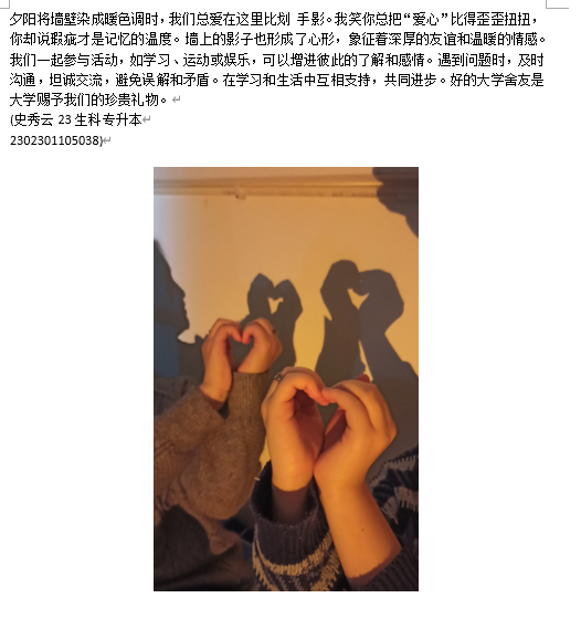 本次比赛以“温暖”为主题,旨在激励同学们通过镜头和画笔捕捉宿舍生活中温馨和谐的瞬间。参赛作品题材广泛,有的捕捉了室友挑灯夜读时的专注表情;有的记录了深夜中大家围坐桌边,分享美食、畅谈梦想的欢乐时光;还有的展现了生病时室友的细心照料和相互陪伴的感人时刻。每一件作品都生动地展示了宿舍成员间的深厚情感,传递出满满的温暖与爱。