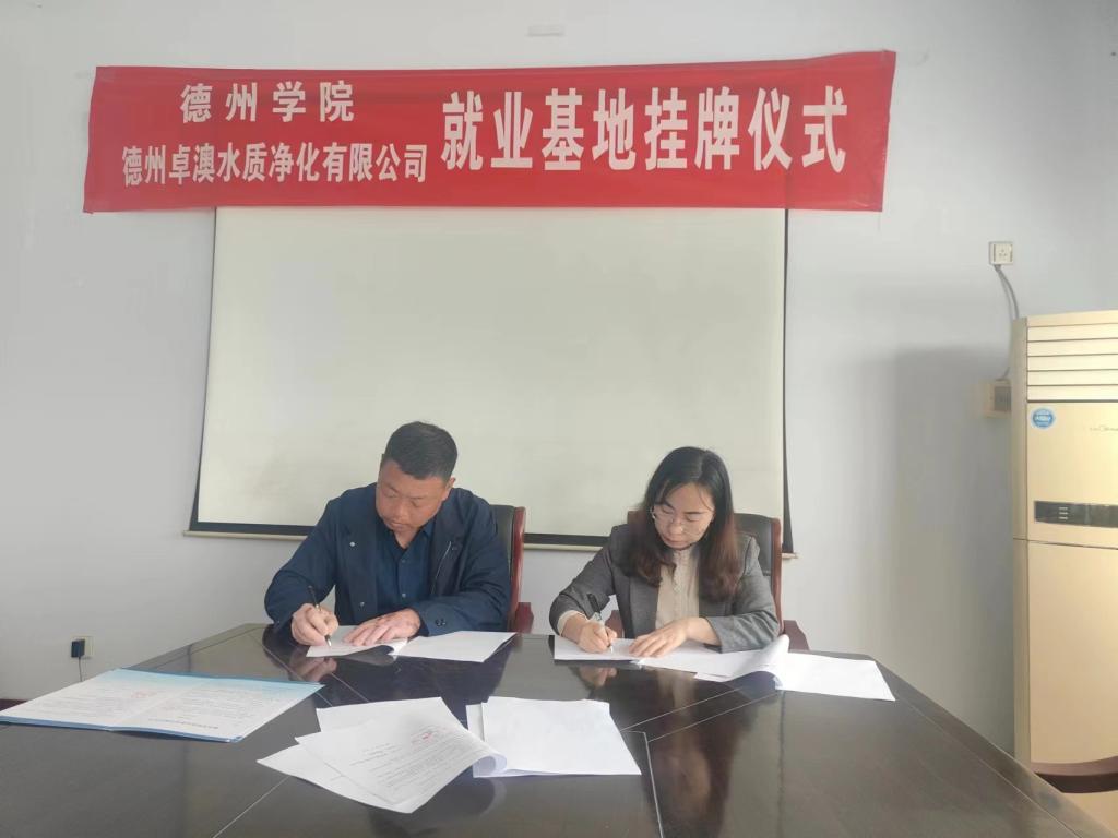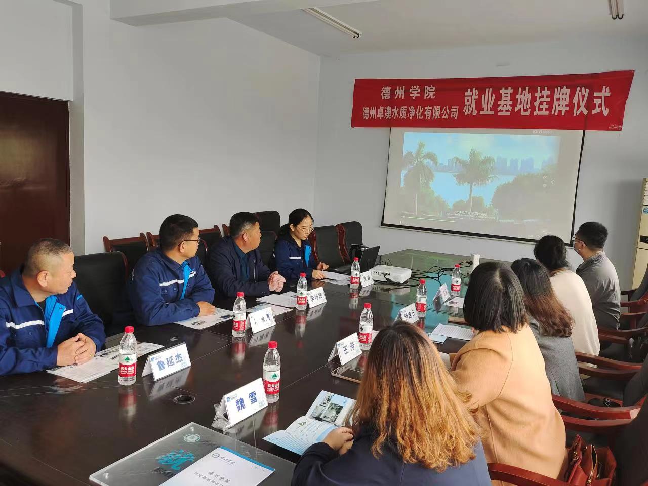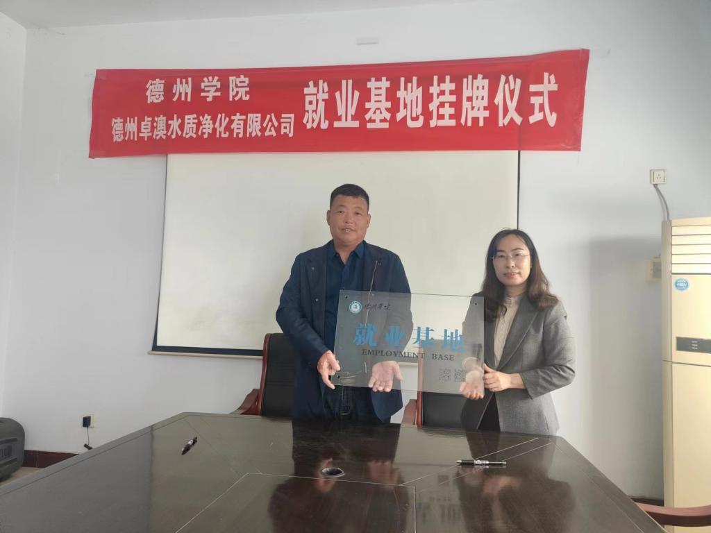 4月14日,beat365英国官方网站深入开展“访企拓岗”促就业系列活动,与德州卓澳水质净化有限公司举办就业基地挂牌仪式。beat365英国官方网站党委书记、系主任、辅导员,德州卓澳水质净化有限公司总经理等相关负责人参加仪式。