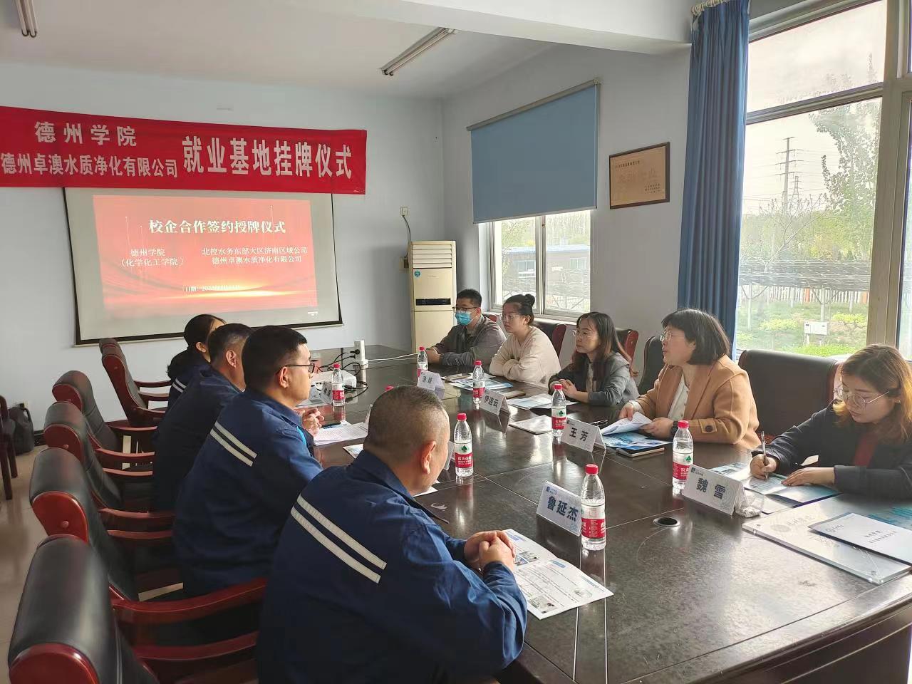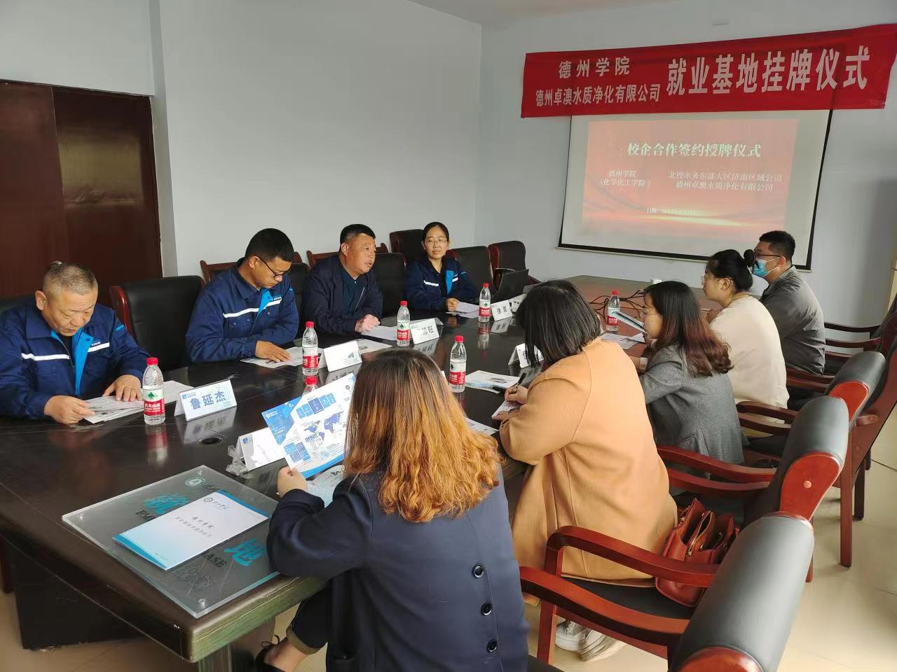 仪式上,公司总经理详细介绍了公司发展历程,工业废水、生活废水的处理流程及公司发展战略,希望能够加强校企合作,织就“共生共赢”网。beat365英国官方网站党委书记就学院的师资力量、人才培养模式、学生就业工作、科研情况做了详细介绍。双方一致认为,要将学校基础研究的优势与企业科技创新活力相结合,在高层次人才共享、联合研发平台建设以及学生就业等方面开展深度合作,共同服务地方经济社会发展。随后,双方签订《德州学院就业基地共建协议书》《实习实训基地协议书》,并进行授牌。