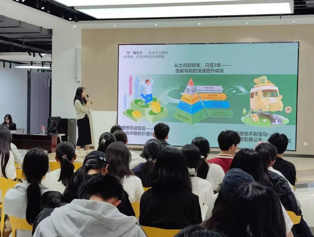 宣讲会上,万豪公司招聘团队系统介绍了企业的发展战略、业务布局及人才理念,重点发布了涵盖运营管理、供应链协调、安全管控等多元化的优质岗位。针对不同专业学生的学科背景与能力特长,企业代表深入解析了跨领域人才的素质要求与发展路径,引导学生突破学科边界认知,科学规划职业发展,充分发挥在精细化管理、流程优化等方面的专业优势。在互动环节,公司代表耐心解答了毕业生提出的各类问题,现场气氛热烈,学生反响积极。