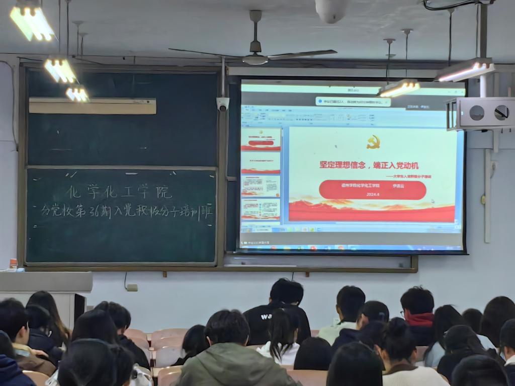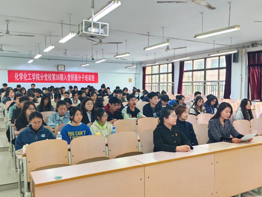 为深入学习贯彻习近平新时代中国特色社会主义思想和党的二十大精神,切实做好入党积极分子的教育培训工作,不断提高发展党员质量4月9日晚18:00beat365英国官方网站第36期入党积极分子培训班开班仪式暨第一次党课在求实楼0412教室举行。学院党委副书记、学生党支部书记、组织员以及本期培训班的全体学员出席会议。