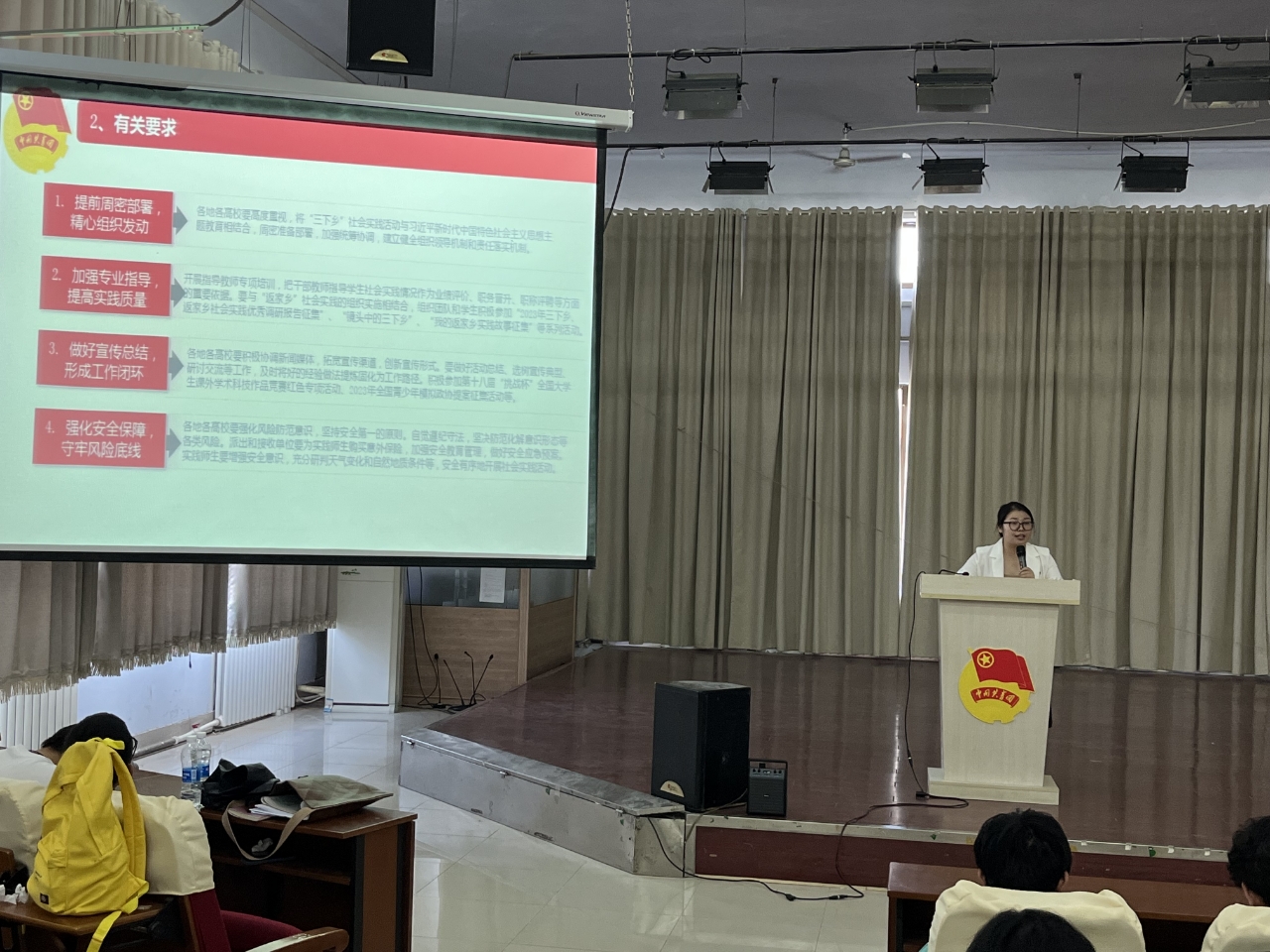 为深入开展学习贯彻习近平新时代中国特色社会主义思想主题教育,引导广大青年学生将理论与实践相结合,帮助青年学生了解国情、观察社会,7月6日下午,beat365英国官方网站于求实楼409报告厅开展了暑期“三下乡”社会实践活动动员大会。会议由学院团委书记主讲,全体2022级在校生参加。