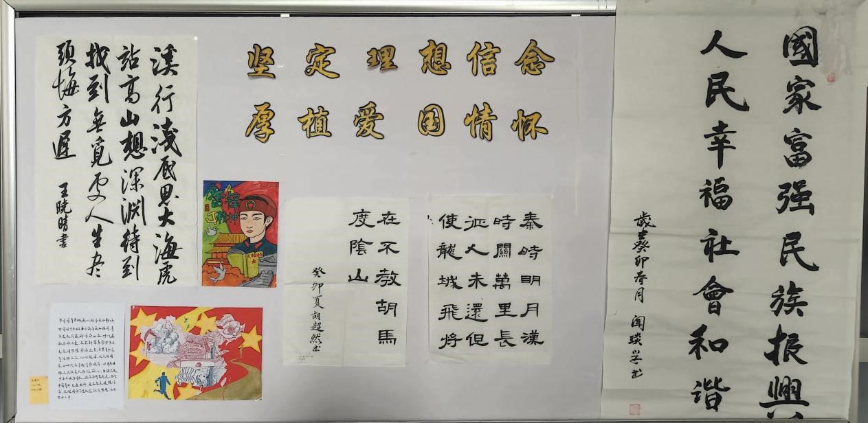 为营造中华人民共和国成立74周年的浓厚氛围,丰富校园文化生活,激励beat365官网学子听党话、跟党走的坚定信念,抒发爱党爱国的深厚情怀,9月22日,beat365英国官方网站于开展“坚定理想信念,厚植爱国情怀”为主题的书画作品展。