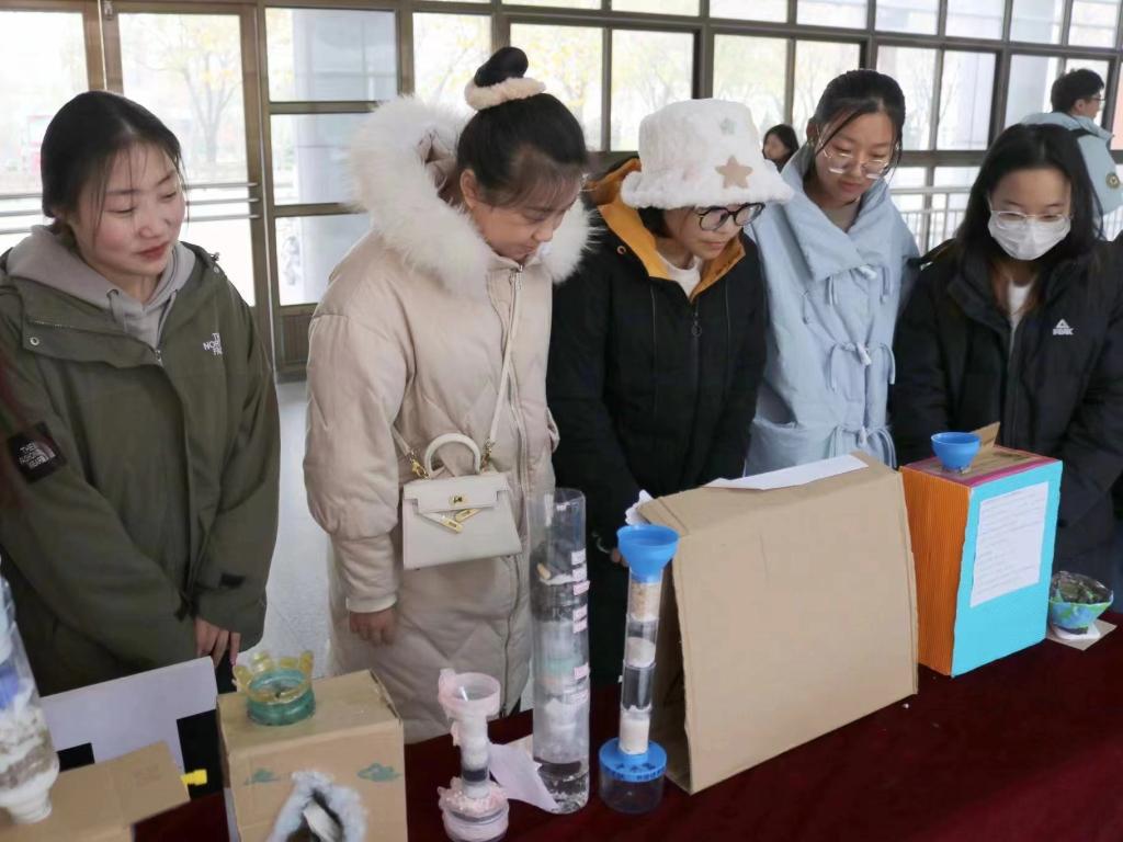 大赛以绿色环保、保护水资源为主题。参赛同学利用塑料瓶、废纸箱、纱布、冼脸巾、碳、砂石等废弃材料,严格按照净水工艺和流程,制作了净水器、净水模型等。大赛共收到来自19个学院的100余件作品,经过三轮评审,《水变清了》《花海》等27项作品突破重围,最终评选出一等奖6项、二等奖9项、三等奖12项。获奖作品在求实楼一楼大厅展出,获得了师生的广泛关注和一致好评。