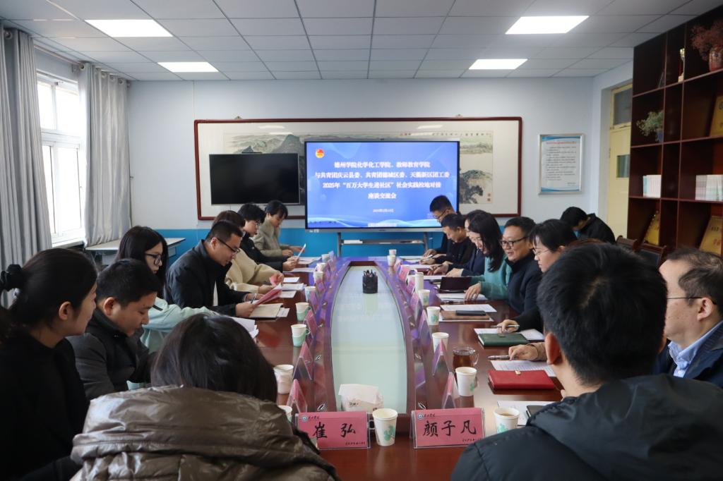 为深入推动校地资源共享、优势互补,助力大学生实践成长与地方经济社会发展,2025年2月23日,beat365英国官方网站与共青团庆云县委开展2025年“百万大学生进社区”社会实践校地对接座谈会。庆云县团委主要负责同志、beat365英国官方网站党政领导班子成员、有关负责同志参加会议。
