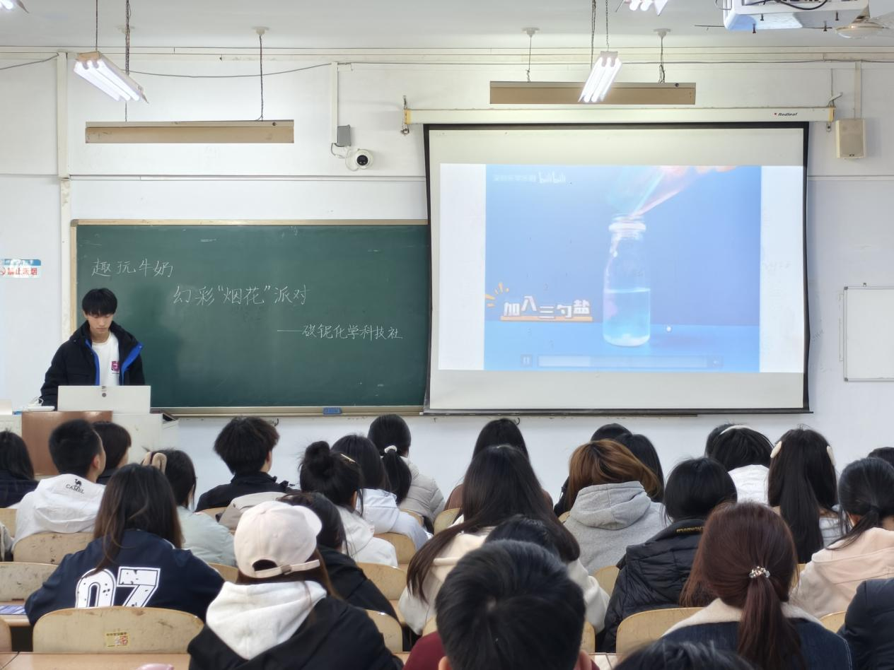 为激发学生对化学知识的探索兴趣,培养其观察和思考生活中化学现象的能力,3月12日,beat365英国官方网站于,求实楼0207教室举办“趣玩牛奶,幻彩‘烟花’派对”活动。各学院共60余人参加。