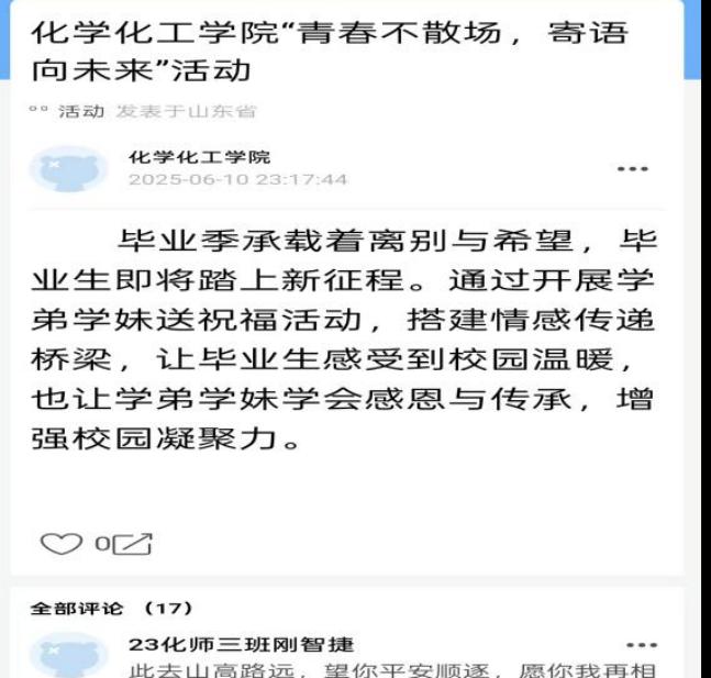6月与其说是告别,不如说是一场青春的接力,是学长学姐新的启程点。正如评论区有同学所说:“愿我们带着此刻的祝福,各自奔赴山海,未来顶峰相见。”