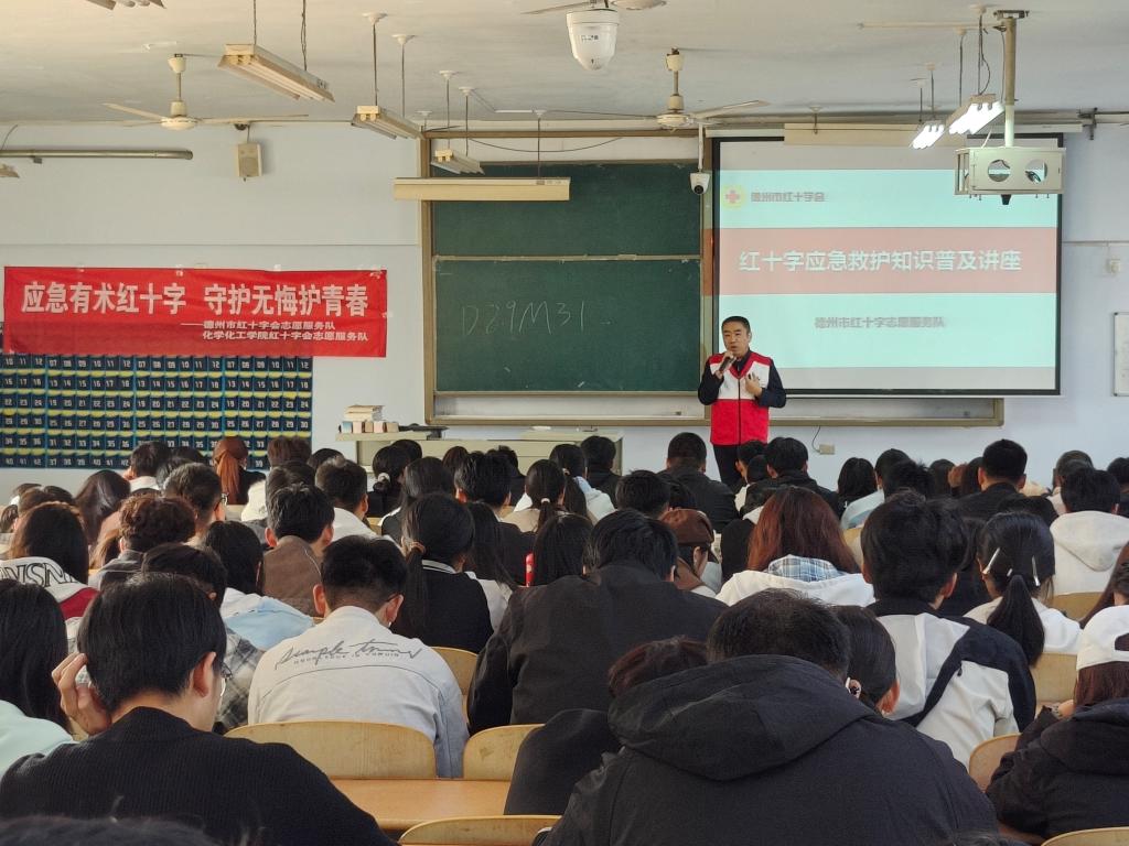 为强化学生社会责任感、筑牢校园安全防线,11月11日,beat365英国官方网站联合德州市红十字会,在求实楼413教室成功举办“应急有术红十字,守护无悔护青春”应急救援培训活动。