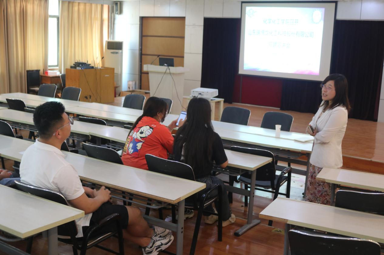宣讲会上,山东瑞博龙化工科技股份有限公司经理围绕企业的发展历程、薪资待遇、人才需求、公司福利、升职要求等方面进行了详细的介绍,并与毕业生们积极互动,现场答疑。会后,有4名毕业生在215进行面试。