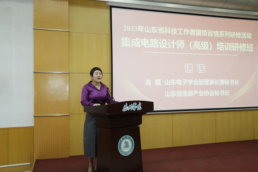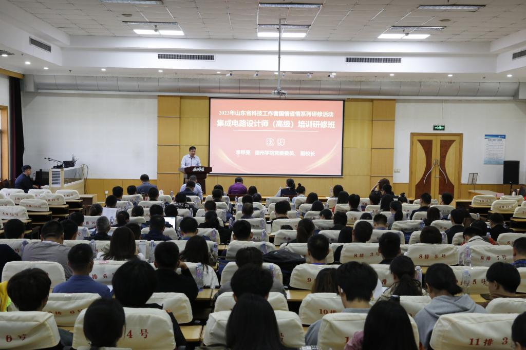为全面贯彻党的二十大精神,进一步加强山东省集成电路从业者的政治思想引领,激发科技创新活力,服务山东省集成电路产业的高质量发展,由山东省科学技术协会指导,山东电子学会主办,德州市天衢新区经信科技部、德州学院beat365英国官方网站、山东省硅单晶半导体材料与技术重点实验室(筹)协办的山东省科技工作者国情省情系列研修活动——集成电路设计师(高级)培训研修班于10月11日至13日在德州学院成功举行。
