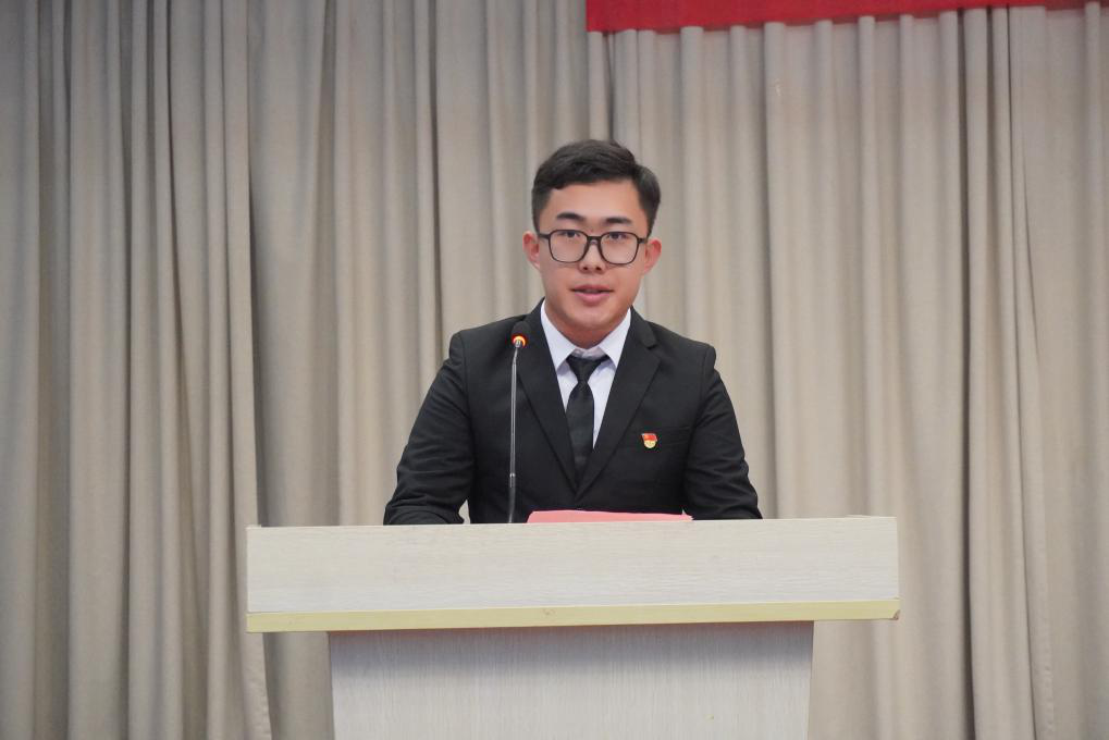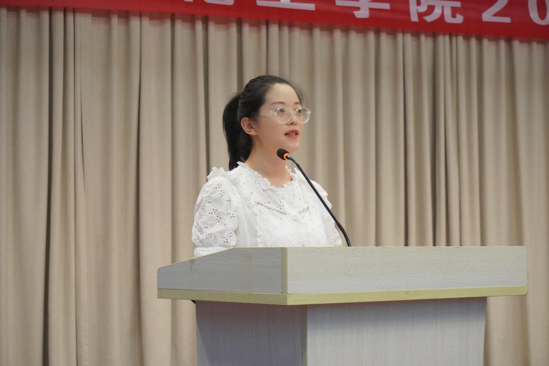 在校生代表鼓励新同学们要勇敢追求梦想,克服迷茫。注重专业知识的学习,提升综合素质,努力成为传承德院“无我”精神的一个“小我”。